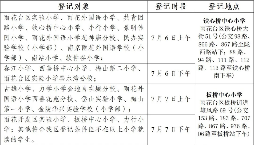 1.按照上表安排,对应小学毕业生家长在对应时间、地点登记。