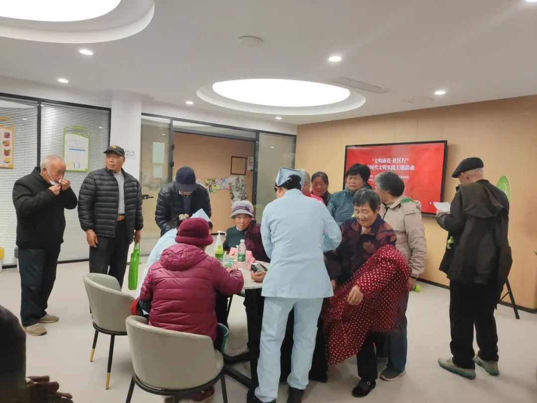 讲座结束后,南京市中医院医师及医务人员为参加活动的居民们进行“健康义诊”。医护人员细致耐心地为居民们测量血压、血糖等基本健康指标,并进行常见疾病的诊断,受到了居民们的一致好评。