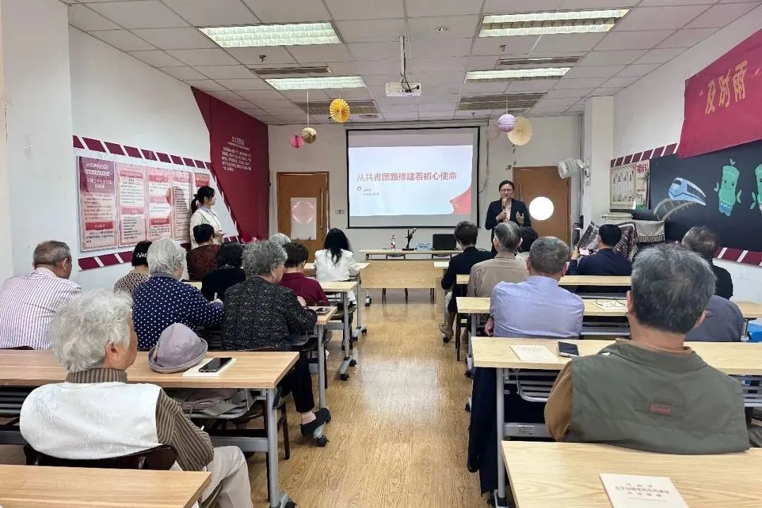 活动现场,雨花街道宣传委员徐嘉嘉开展《从共青团路修建看初心使命》理论宣讲。她以共青团路修建历程为切入点,带领社区党员们回溯往昔峥嵘岁月。