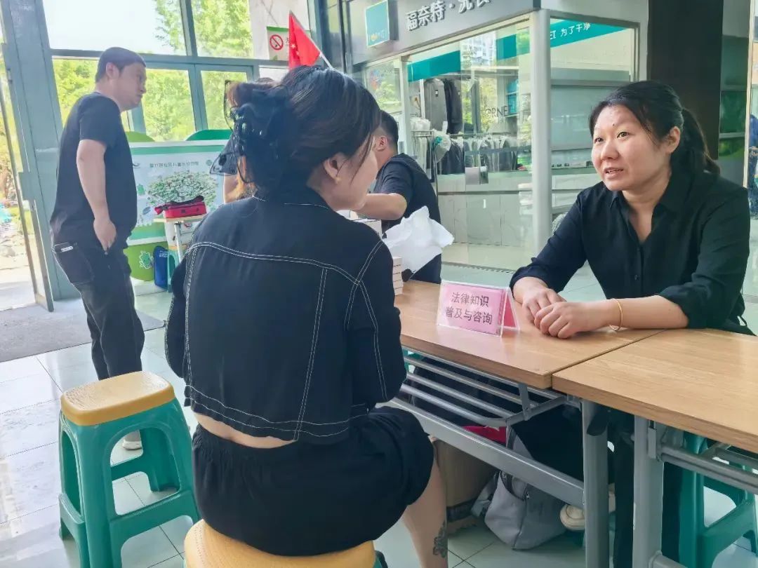 法律咨询区,专业人士倾听居民诉求,提供实用法律建议。此外,现场还提供上门网络测速、维修服务,手机清洁贴膜,一站式解决居民生活中的各类问题。