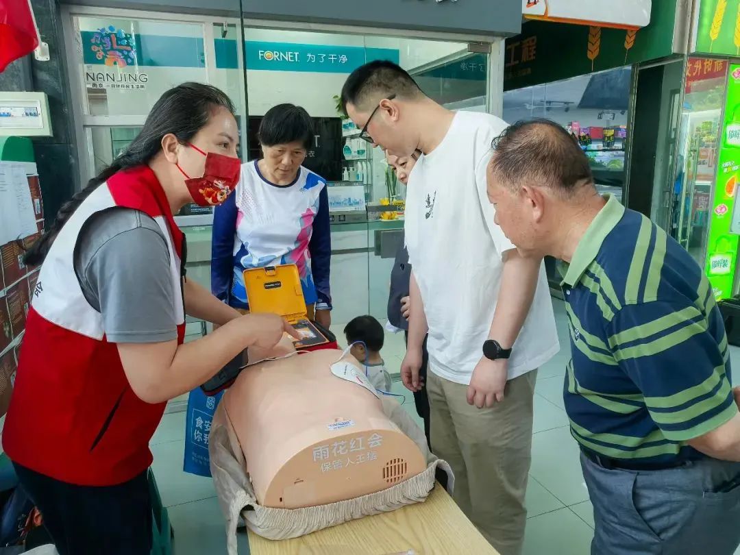 在急救宣传培训区,区红十字的急救志愿者详细讲解心肺复苏等急救技能的操作要点和注意事项,倡导居民积极参与,共同构建社区应急救护的坚实屏障。