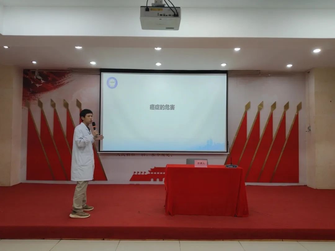 活动开场,肿瘤科主任中医师刘青带来《癌症防治知识》主题讲座。刘主任以专业视角,从肿瘤的发病原因、早期信号等方面展开科普,结合临床案例,详细介绍肿瘤的早筛早诊及规范治疗手段,为居民的健康管理送上 “及时雨”,引导大家树立科学的健康观念,提升自我保健能力。