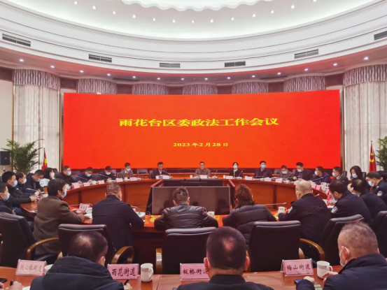 王金玉强调,要深入学习贯彻党的二十大精神,坚定不移践行“两个确立”、做到“两个维护”;要切实加强法治保障,坚持不懈服务中心工作,与时俱进护航高质量发展;要紧紧围绕贯彻总体国家安全观,全力守牢政治安全和社会稳定两条底线;要筑牢平安雨花基石,提升社会治理水平,不断推进落实网格机制;要深化政法领域改革,释放改革效能,全面提升执法司法质效;要全面落实新时代党的建设总要求,持续发力打造雨花高素质政法铁军。